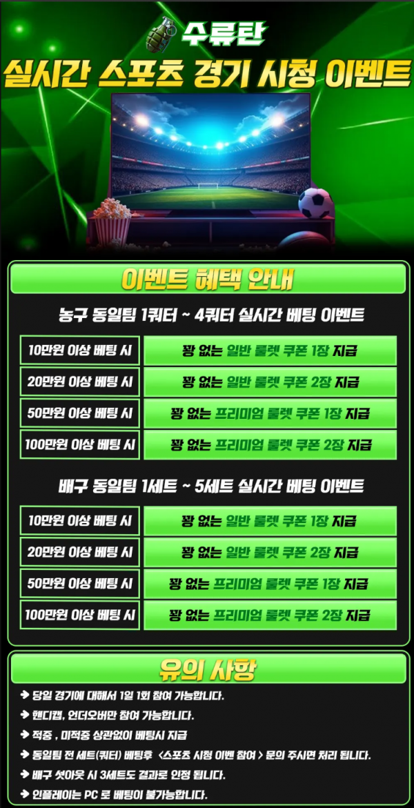 토지노 수류탄 ♡EVENT♡실시간 스포츠 경기 시청 이벤트