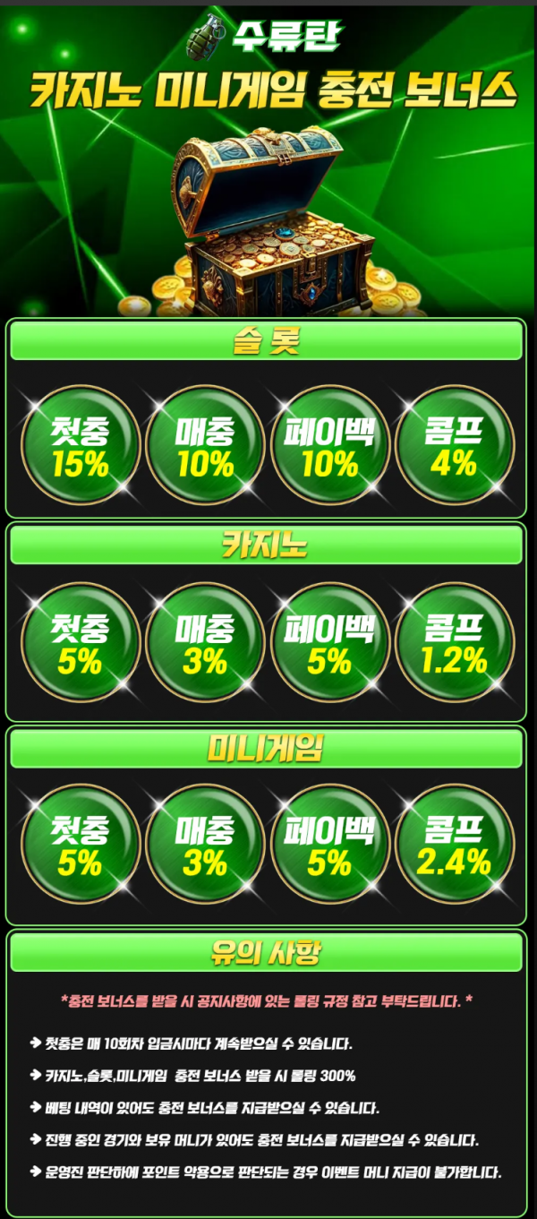 ◆카지노,슬롯,미니게임 충전 보너스 받을 시 롤링 300%
