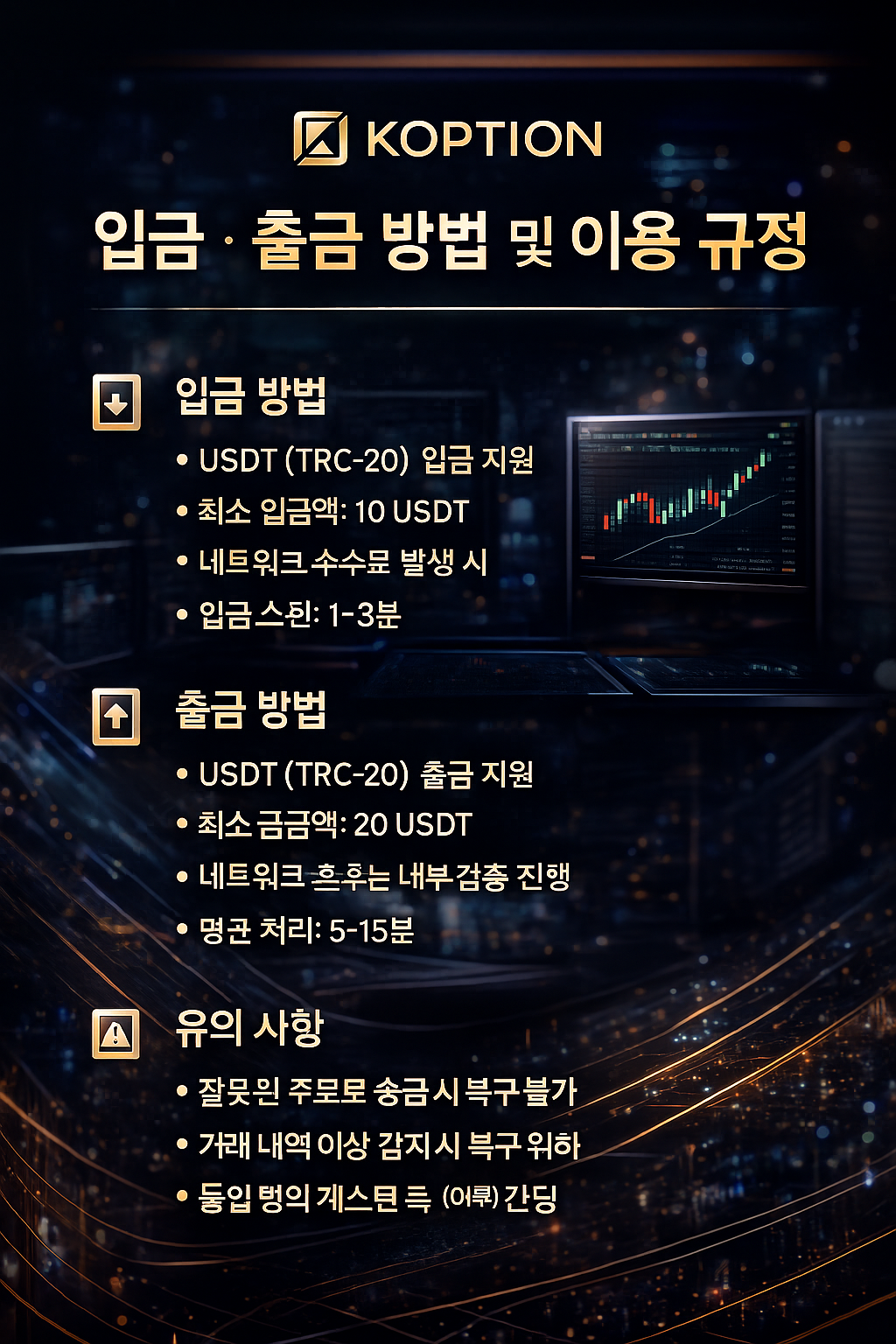 입금, 출금 방법 및 규정